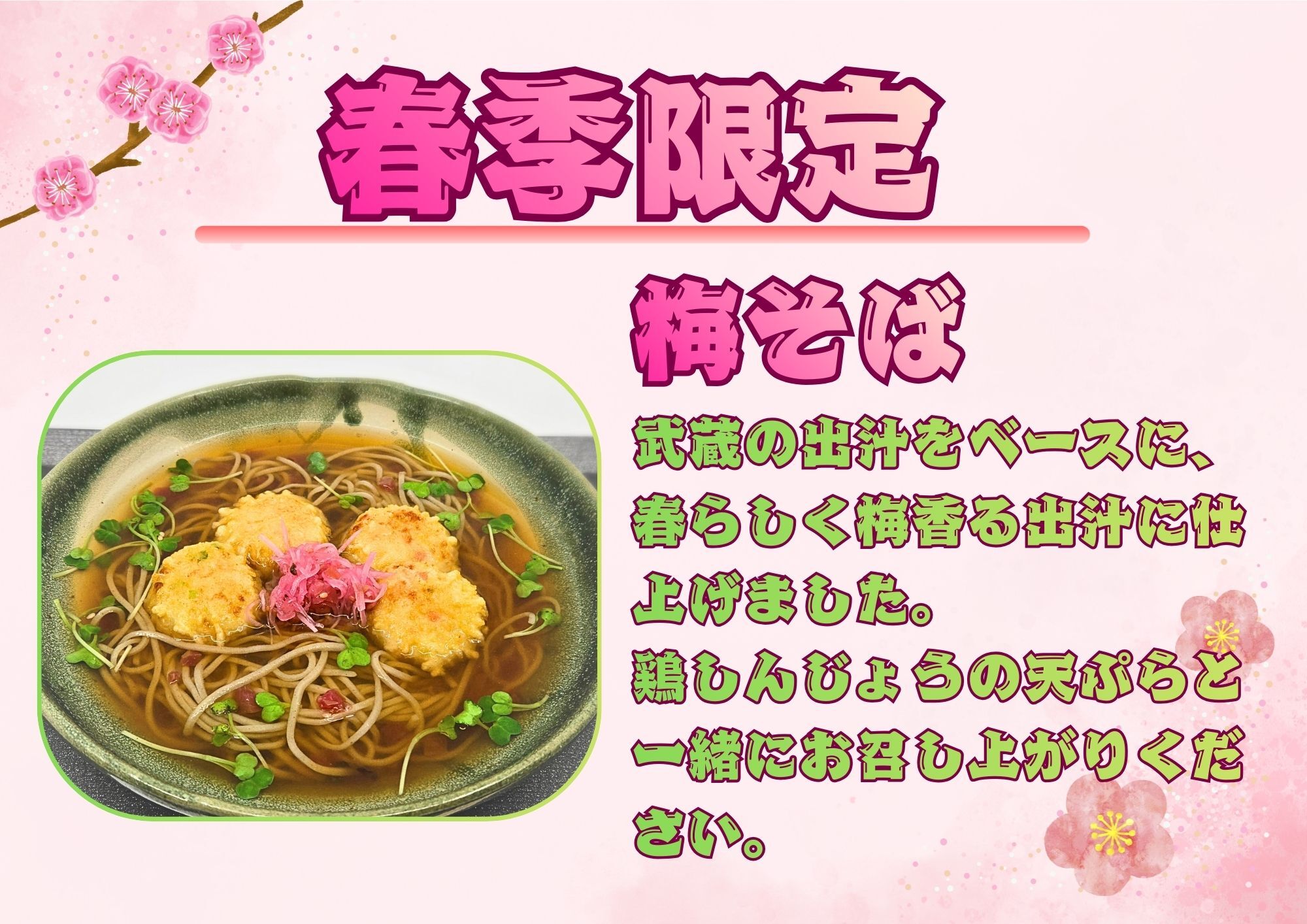 2026.03.24 春メニュー 寒い冬を超え、桜咲く季節になりました。告知が遅くなりましたが、春季限定 梅そば 販売中です。また天ぷらの野菜も春らしい菜の花やタケノコといった野菜に変更しております。皆様のご来店をお待ちしております。 ≫ PDFを開く